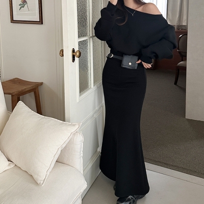 bl.도톰기모오프숄더머메이드SET