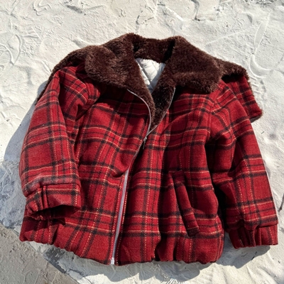 비다이어리.퍼카라레드누빔체크코트